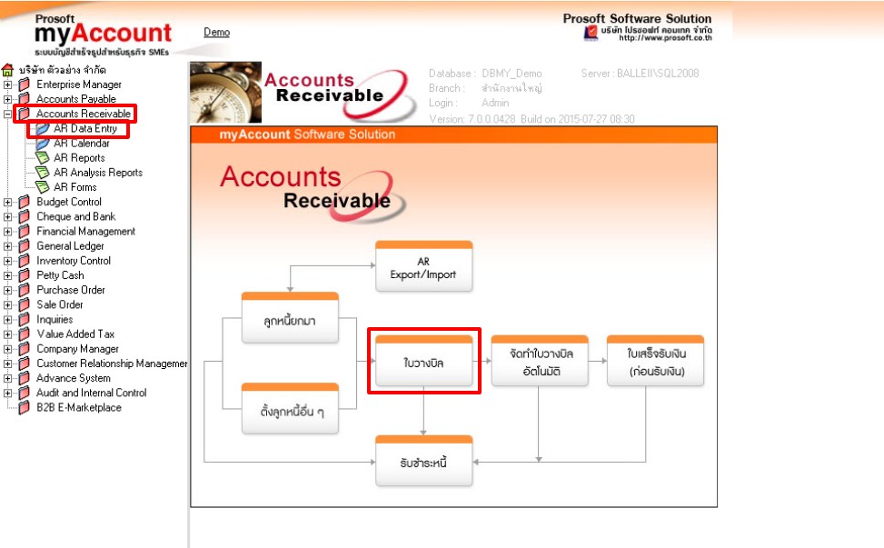 1.เข้าที่ระบบ Accounts Receivable > AR Data Entry > ใบวางบิล