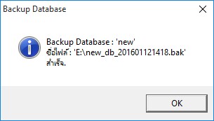 5. จะปรากฎหน้าต่างแจ้งเตือนว่า Backup สำเร็จหรือไม่ หากไม่สำเร็จแนะนำให้ย้ายไดร์เก็บไฟล์ Backup ไปยังไดร์ที่ติดตั้งตัวฐานข้อมูล (Microsoft SQL Server) ไว้