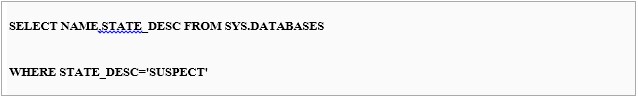 เมื่อรันคำสั่งดังกล่าวเสร็จแล้ว จะแสดงฐานข้อมูล Database ที่มีแสดงสถานะ Suspect ขึ้นมา