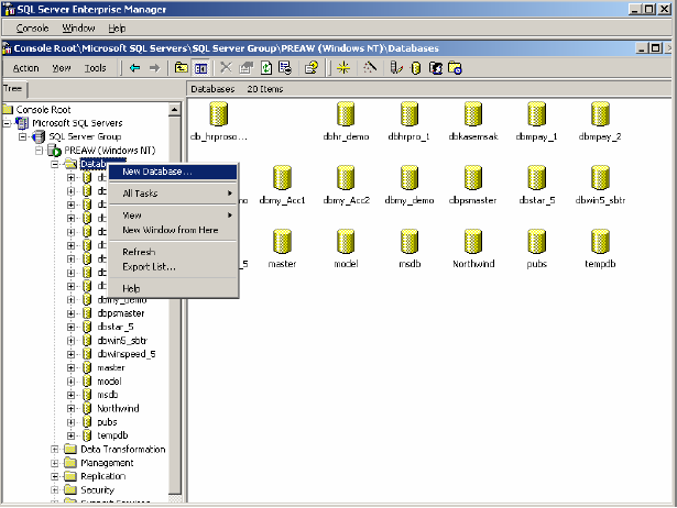 ขั้นตอนการสร้างฐานข้อมูลหรือ New Database ผ่าน Microsoft SQL Server 2000 มีขั้นตอนอย่างไร