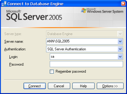 จะปรากฏหน้า Connect Server 2005