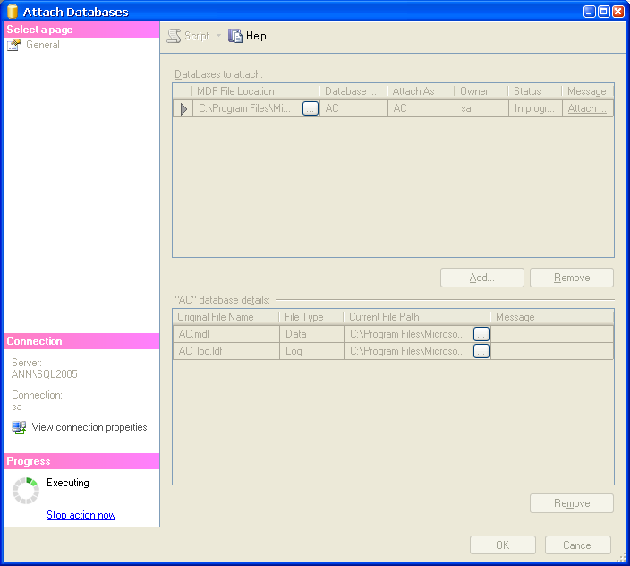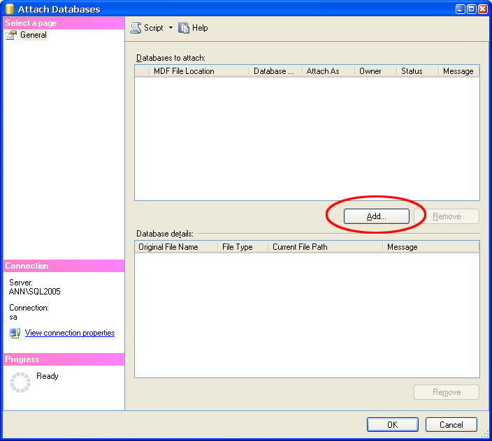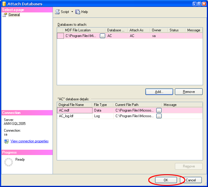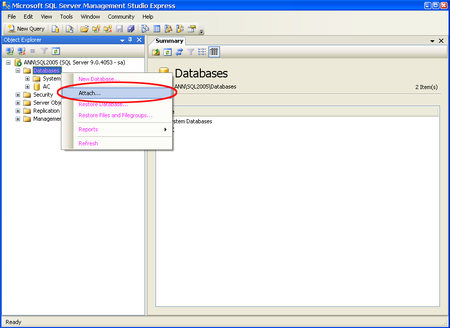 ขั้นตอนการ Attach Database Microsoft SQL Server 2005 มีขั้นตอนอย่างไร