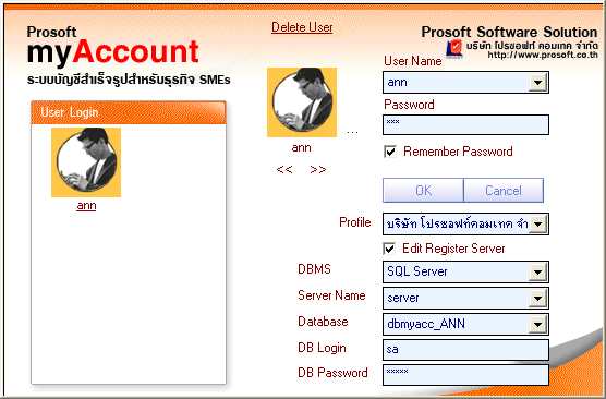 ที่ Microsoft SQL แต่สำหรับกิจการที่ใช้ฐานข้อมูลเป็น msde จะไม่มีการตั้ง password