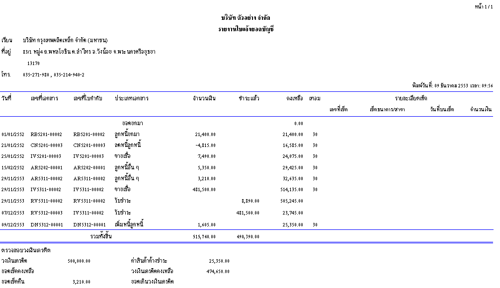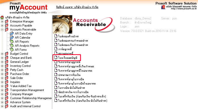 สามารถที่จะเรียกดูรายงานได้และสามารถ print ส่งเป็นใบแจ้งยอดบัญชีให้ทางลูกค้าทราบได้โดยไปที่
