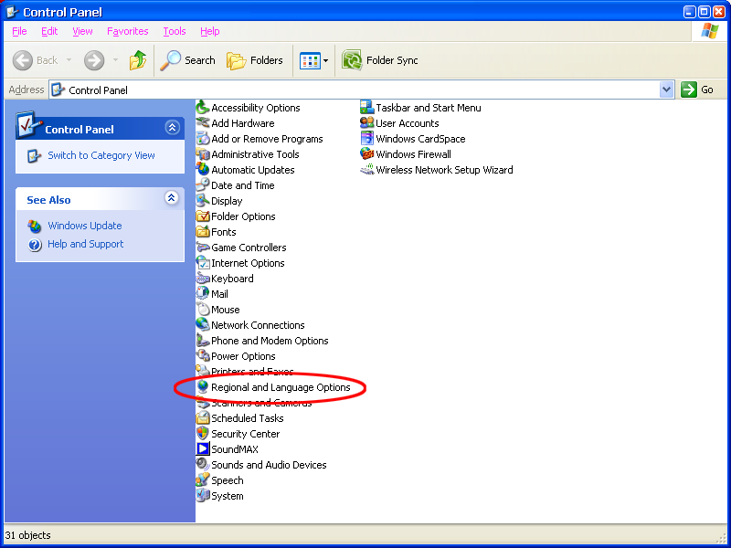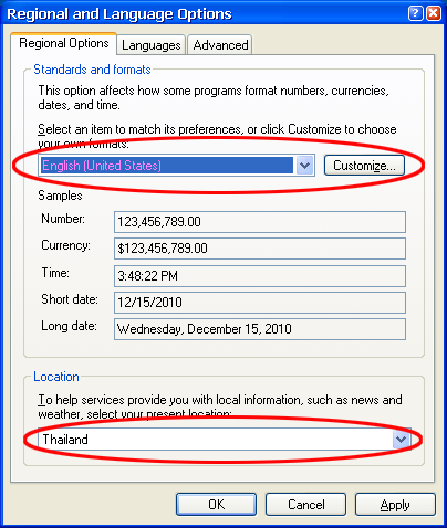 3. ได้หน้าจอ Regional and Language Option เลือกที่ Tab Regional Option ให้กำหนดข้อมูลเบื้องต้นดังรูปภาพด้านล่างนี้