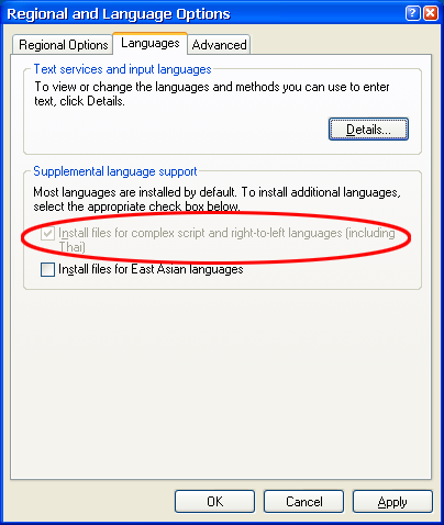 4. เข้าไปยังแถบ Languages กรณีที่ยังไม่มีการติดตั้ง Windows ภาษาไว้จะไม่มีการติ๊กไว้ให้ติ๊กที่ช่อง Install files ไว้ให้ทำการติ๊กแล้วเลือกที่ ปุ่ม Apply จะมีการฟ้องให้ใส่แผ่นเพื่อทำการติดตั้ง Windows ให้ทำการติดตั้งตามปกติ ค่ะหลังจากที่ติดตั้งแล้วให้ทำการ Restart เครื่องก่อนใช้งาน