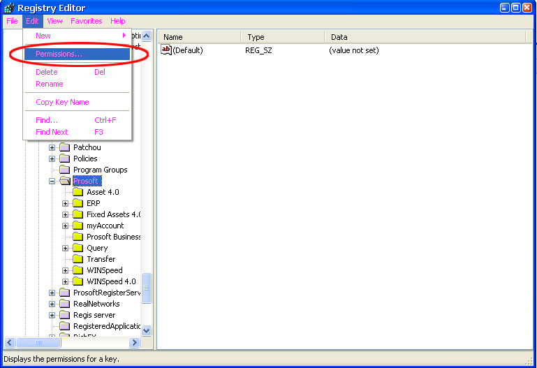 4. ลือก Prosoft คลิกที่ Edit เลือก Permissions