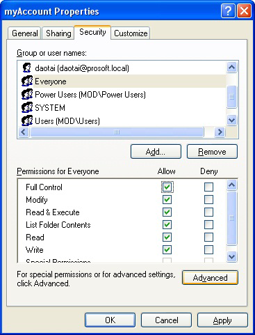โดยการกำหนดให้มี สามารถที่จะ READ Write , Modify ,Full Control ได้