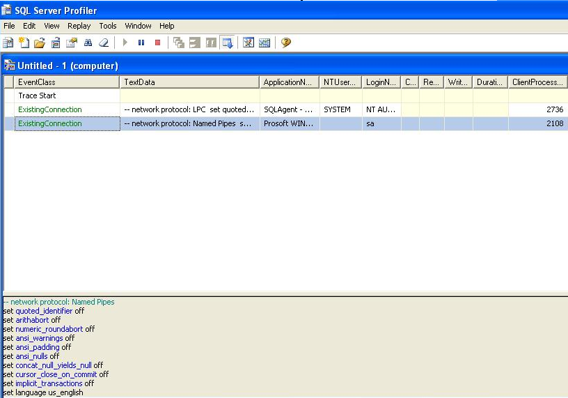 3. โปรแกรมจะแสดง ระบบการทำงานของ SQL Profiler หลังจากนั้นให้เริ่มการใช้งานโปรแกรมบัญชีที่ใช้ผ่านระบบ SQL ได้