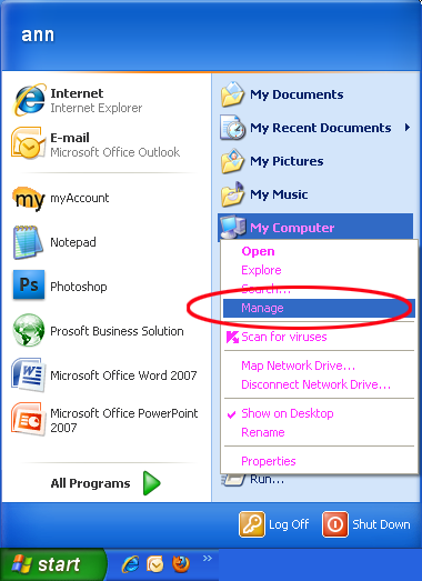 2. ไปที่ My computer > Manage > เลือก User Local and Group