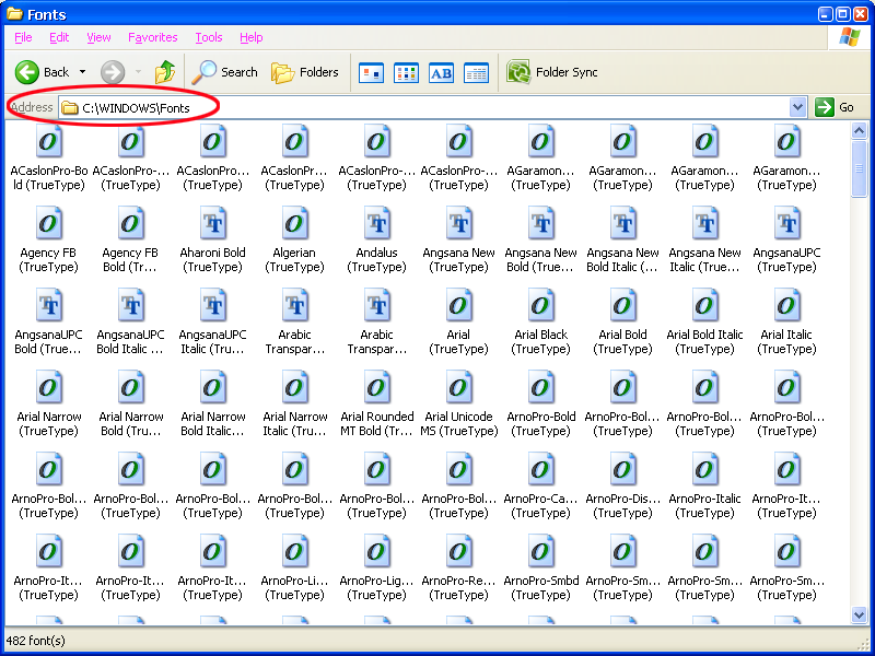 1.ไปที่ My Computer > C:\WINDOWS\Fonts