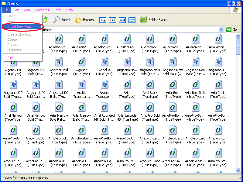 2.ไปที่ File / Install New Font….