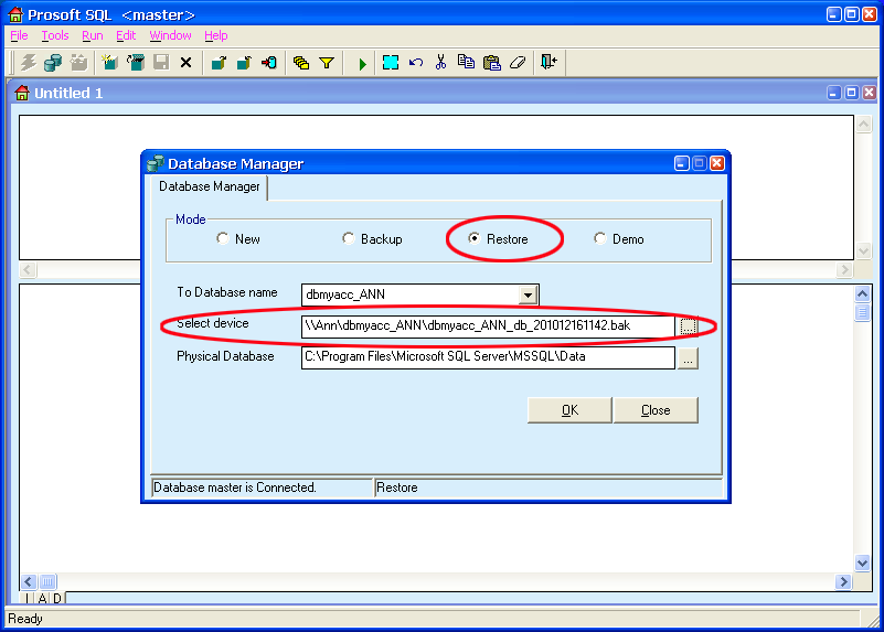 ขั้นตอนการ Restore Datab...