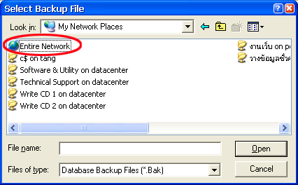 วิธีการ Restore Database จากเครื่อง Client หรือผ่าน Network จะมีวิธีการอย่างไร