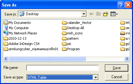 1.5 ช่อง save as type : ให้เลือกไฟล์โดยกดปุ่ม เพื่อเลือกเป็น HTML Teble