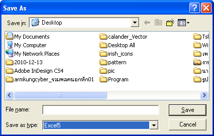 2.5 ช่อง save as type : ให้เลือกไฟล์โดยกดปุ่ม เพื่อเลือกเป็น excel หรือ excel 5