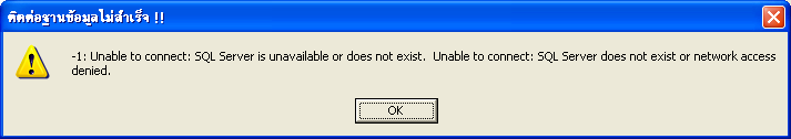 ในกรณีที่ไม่สามารถ log in เข้าโปรแกรม Fixed Assets ได้เกิด error ดังกล่าวเนื่องจากไม่ได้ระบุชื่อ server name ให้ตรวจสอบดังนี้
