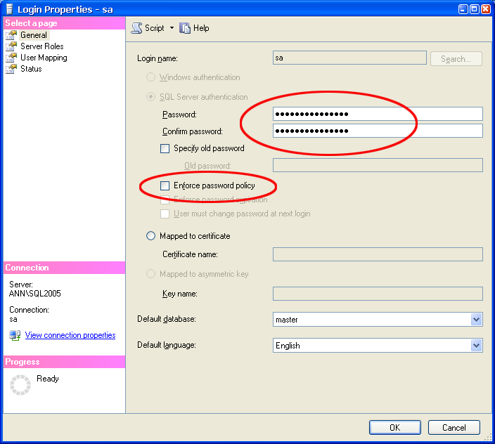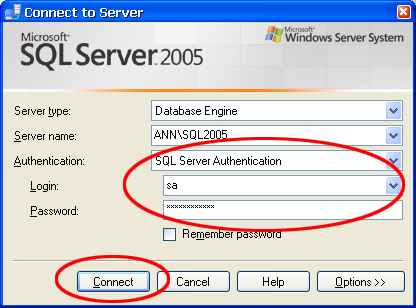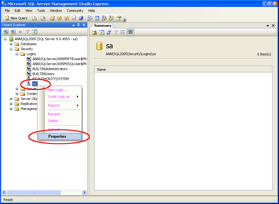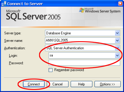 วิธีการลบ Password ของ User SA สำหรับMicrosoft SQL Server 2005 จะมีวิธีการอย่างไร