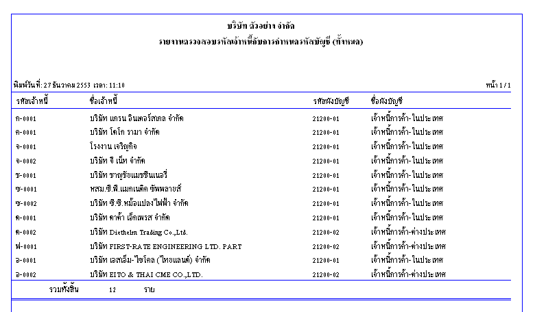 - เฉพาะที่กำหนดรหัสผังบัญชี  รายงานจะแสดงเฉพาะรหัสเจ้าหนี้ที่กำหนดรหัสบัญชีไว้แล้วเท่านั้น
