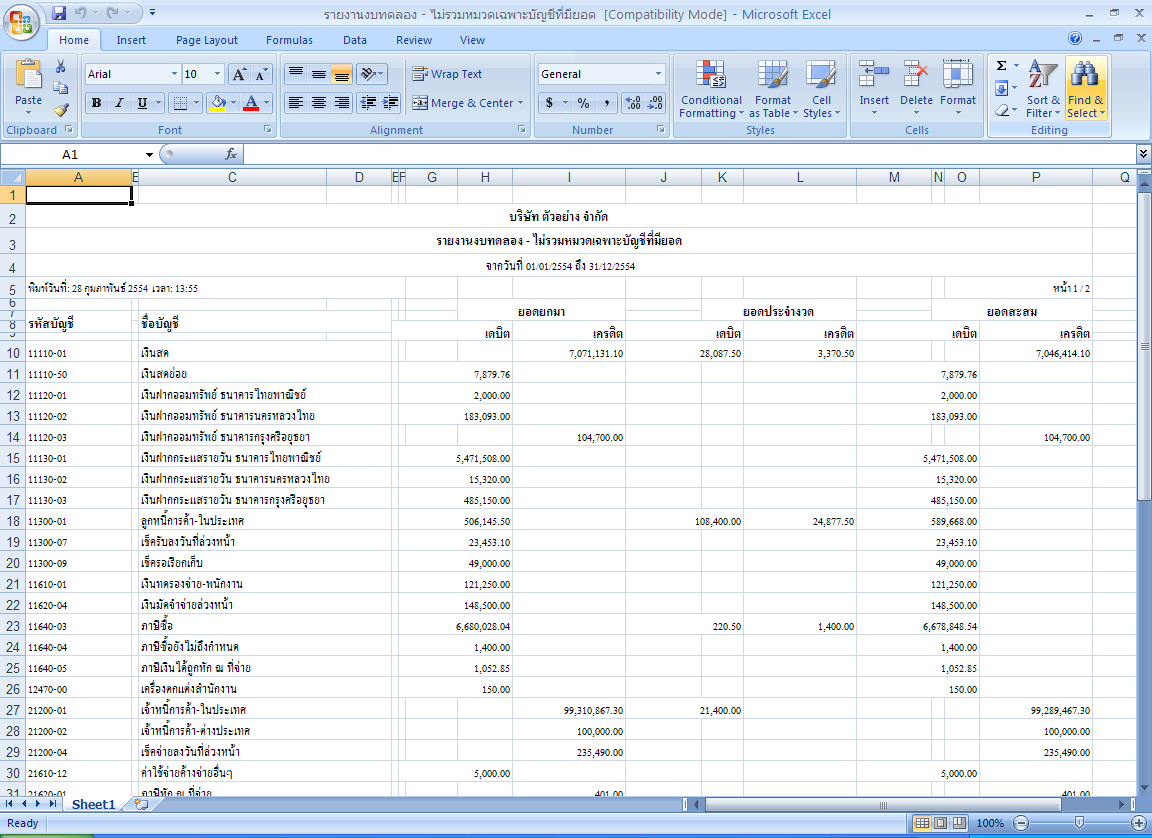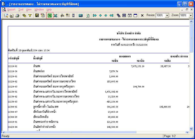ต้องการ Export งบทดลอง จากตัวโปรแกรมออกไปที่ Excel ให้อยู่ในรูปแบบของ งบที่พร้อมใช้งาน