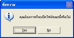 เมื่อเลือก Save จะมีข้อความถามว่าต้องการเปิดไฟล์ Excel เลยหรือไม่