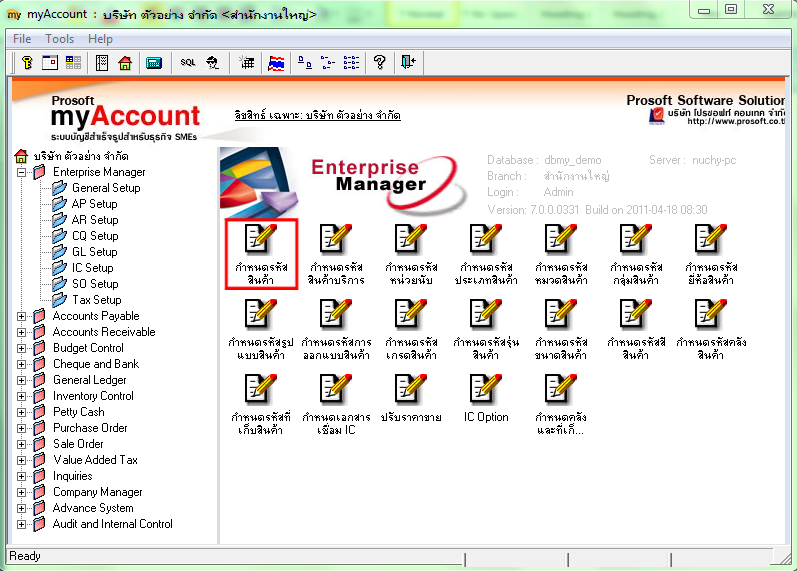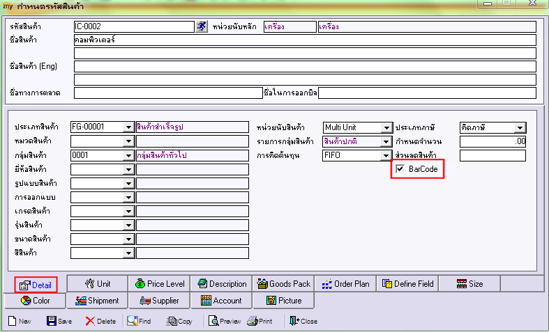 1. เริ่มที่การกำหนด Barcode ให้กับสินค้าที่ต้องการใช้กับเครื่องยิง barcode กำหนดที่ Enterprise Manager / IC Setup : กำหนดรหัสสินค้า