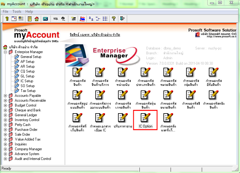 2. เปิดการใช้งาน Barcode ที่ระบบ Enterprise Manager / IC Setup : เลือกเมนู IC Option