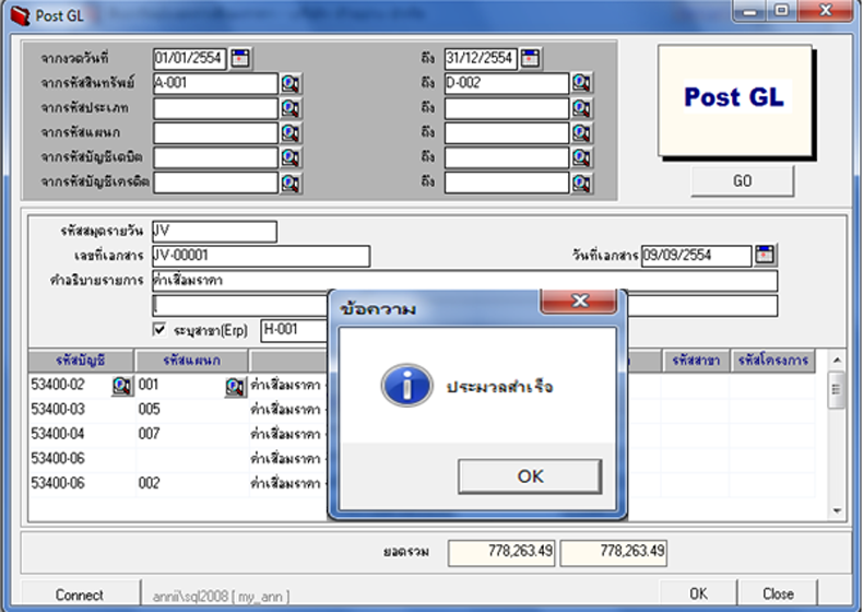 วิธีการตรวจสอบรายการที่ Post GL ค่าเสื่อมราคาไปยังโปรแกรม myAccount