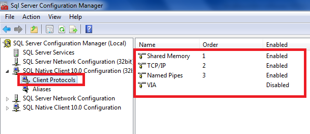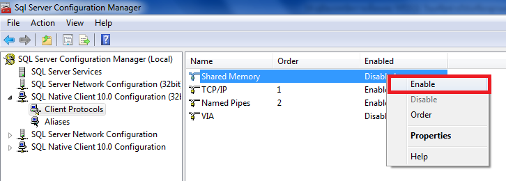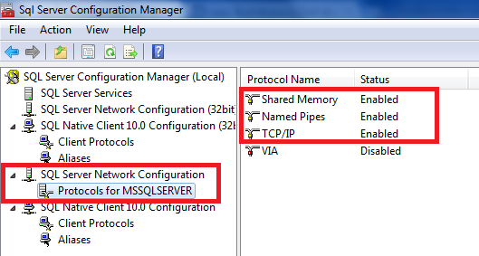 10.ให้ทำการ Enable ตามรุปให้ครบ แล้วทำการ Restart MSSQL SERVER 1 ครั้ง หรือ Restart เครื่องคอมพิวเตอร์ก็ได้