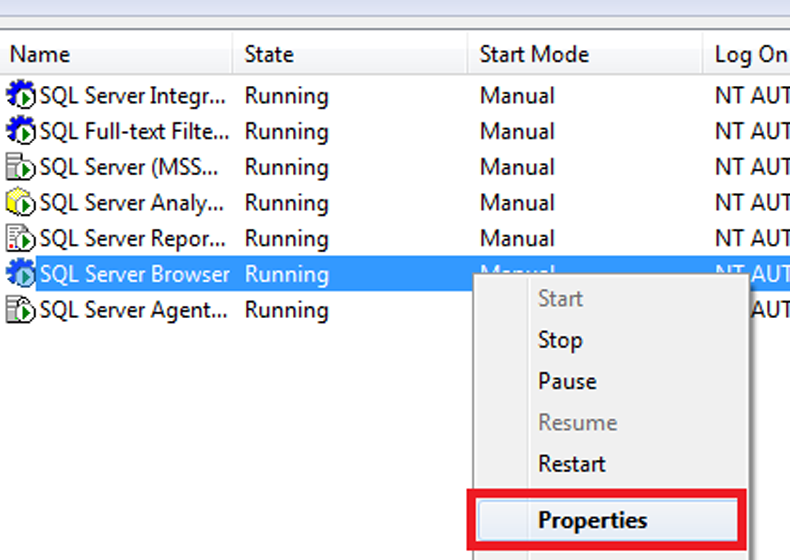 4.ให้ทำการ Start ทุก Service ถ้าหากว่า ไม่สามารถ Start ได้ให้ทำการคลิกขวา เลือกที่ Properties