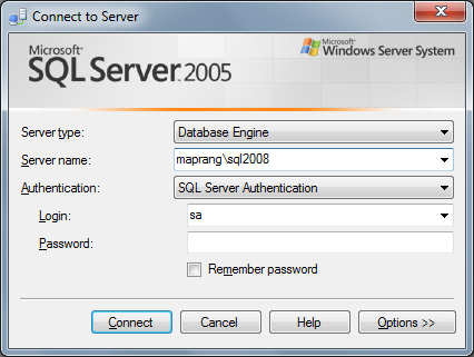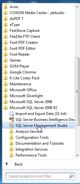 ไปที่ Start / Program / Microsoft SQL Server2008 / SQL Server Management Studio
