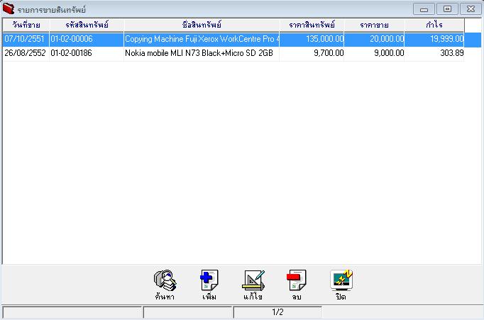 ที่หน้าต่างบันทึกรายละเอียดสินทรัพย์ ที่ช่อง S จะแสดงสถานะเป็น ‘S’ คือ sale แสดงถึงมีการขายสินทรัพย์นี้แล้ว