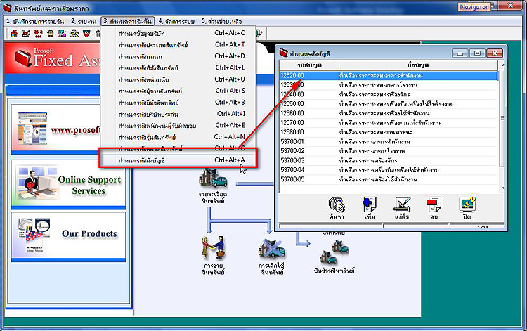 โปรแกรม myAccount กำหนดรหัสบัญชี ค่าเสื่อมราคา ด้วยรหัสบัญชี 12520-00