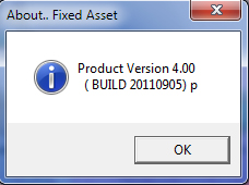 หน้าต่าง About….Fixed Asset แสดง version ที่ใช้งานในส่วน Build