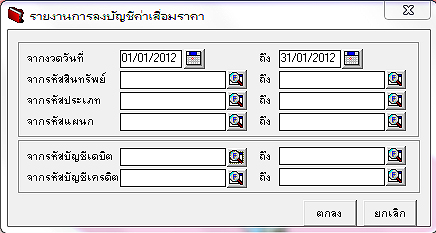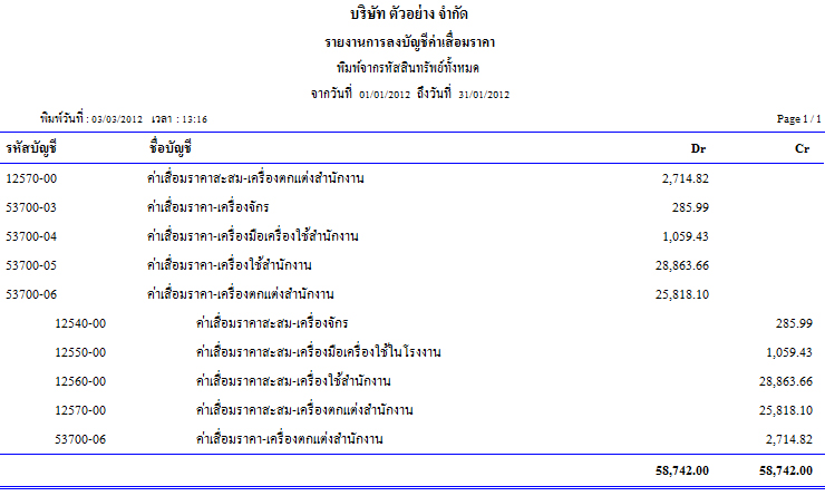 ตัวอย่าง รายงานการลงบัญชีค่าเสื่อมราคา เดือน ม.ค. 2012
