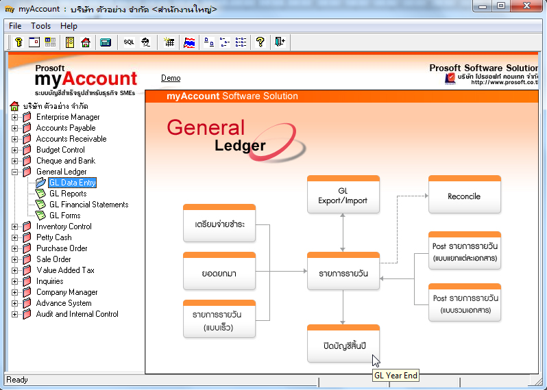 1. ทำการบันทึกรายการปิดบัญชี โดยบันทึกรายการปรับปรุงลงใน General Ledger   => GL Data Entry => รายการรายวัน
