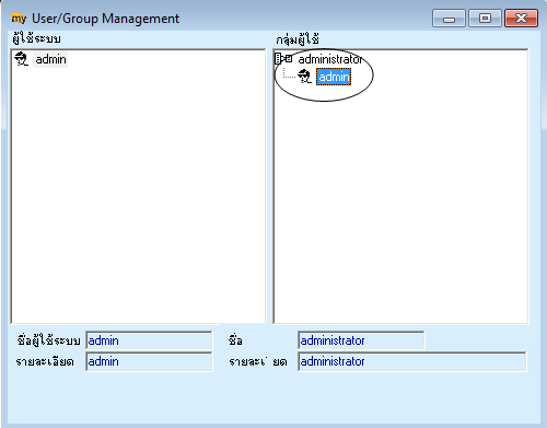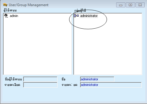 รายละเอียด  บันทึกชื่อที่ต้องการให้แสดงที่หน้าต่าง  User and Group Management