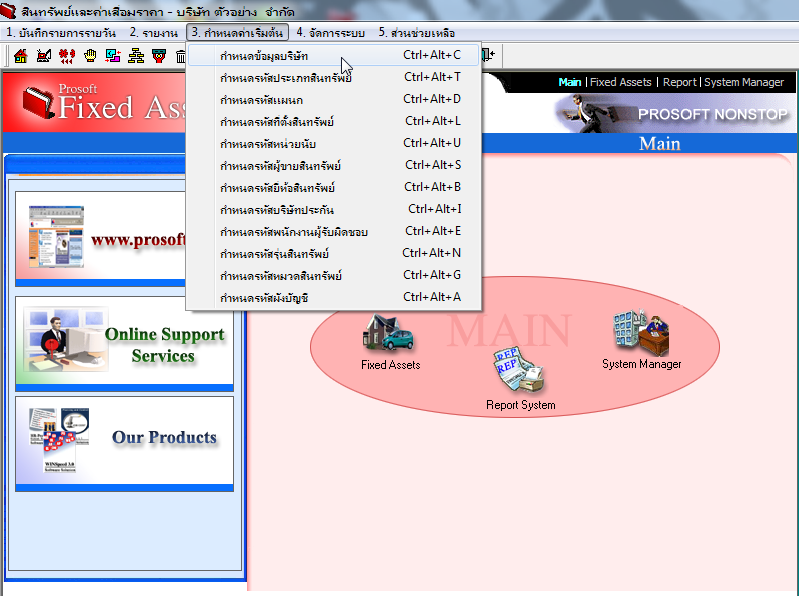 1. เลือกเมนู 3.กำหนดค่าเริ่มต้น ที่หน้าจอ กำหนดข้อมูลบริษัท