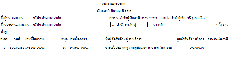 ตัวอย่างรายงานภาษีขาย ที่อัตรา 0%