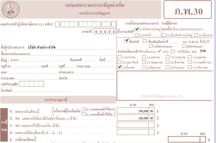 ตัวอย่าง แบบแสดงรายการภาษีมูลค่าเพิ่ม ภ.พ.30