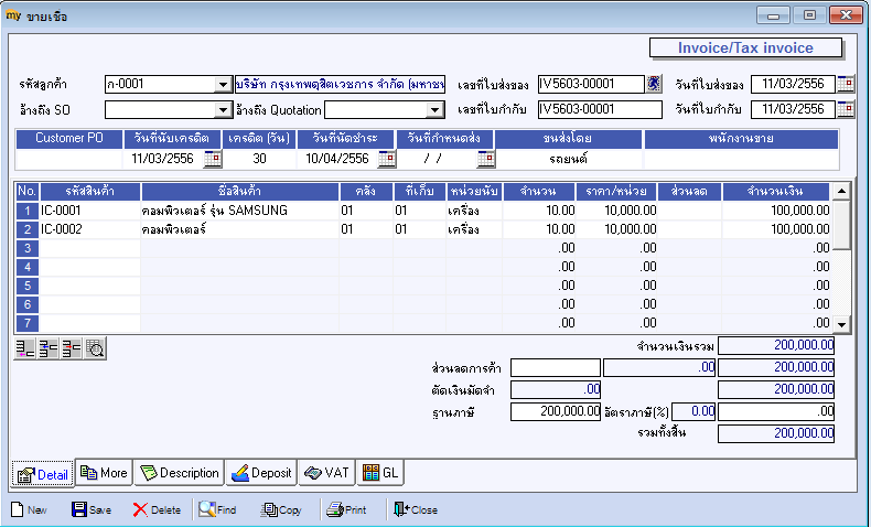 2. ขายสด/ขายเชื่อ โดยระบุข้อมูลดังนี้