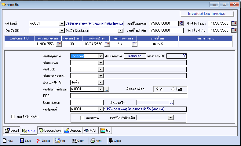 • ตรวจสอบอัตราภาษีแถบ Detail ว่าระบุ 0%