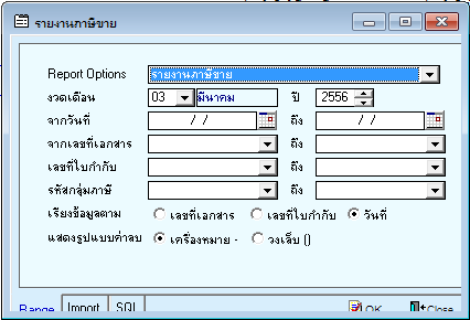 • เลือกรายงานภาษีขาย(ระบบ Value Added Tax > VT Tax Report > รายงานภาษีขาย)