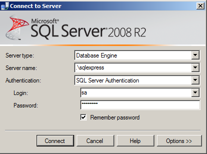 1. ให้ทำการ login เข้าฐานข้อมูลโดยโปรแกรม SQL Management Studio