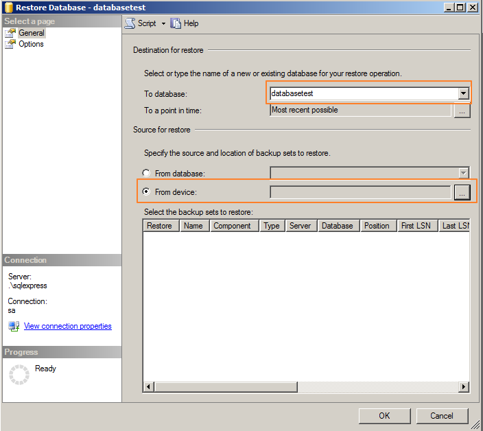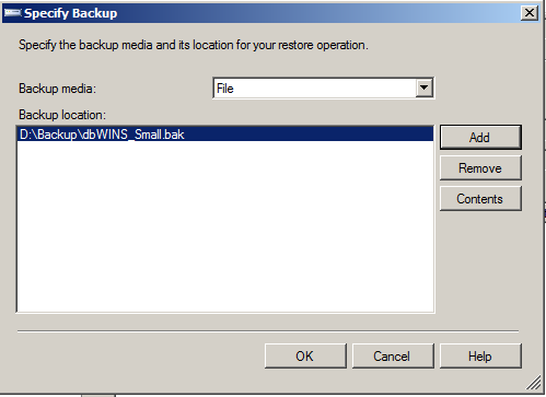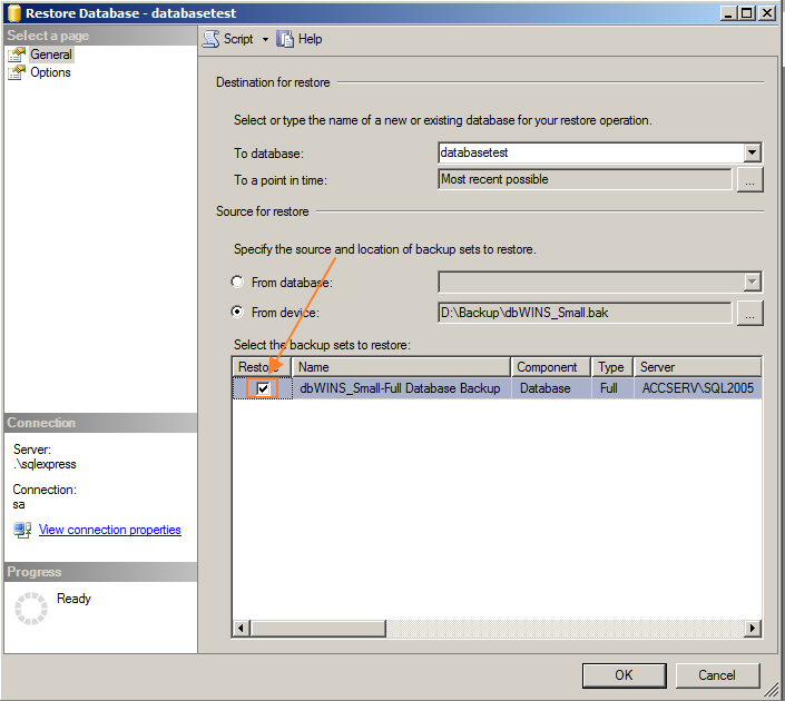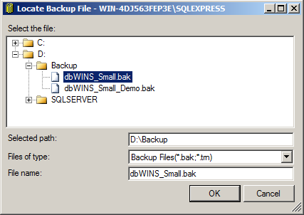 - คลิกเลือก backup ของ Database ที่ต้องการแล้วคลิก OK