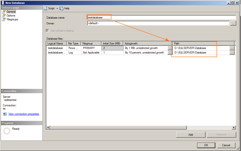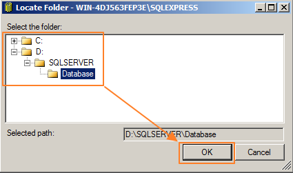 - จะเห็นได้ว่าพาทที่ติดตั้ง Database ของเราจะอยู่ที่ D:\SQLSERVER\Database ตามที่เราได้ตั้งค่าไว้แล้วก่อนหน้านี้