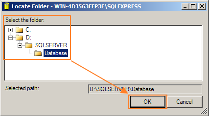 4. คลิกเลือกพาทที่เก็บ Database ใหม่ เสร็จแล้วคลิก OK